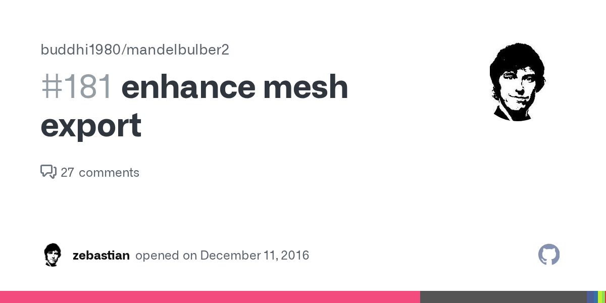 Contribute to buddhi1980/mandelbulber2 development by creating an account on github. The workflow for the new functionality is very simple... You open up the mesh export dialog from the file menu.